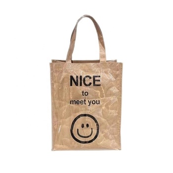 Novo atacado personalizado lavável impermeável eco amigável papel kraft sacolas de tecido sacos com alças para compras